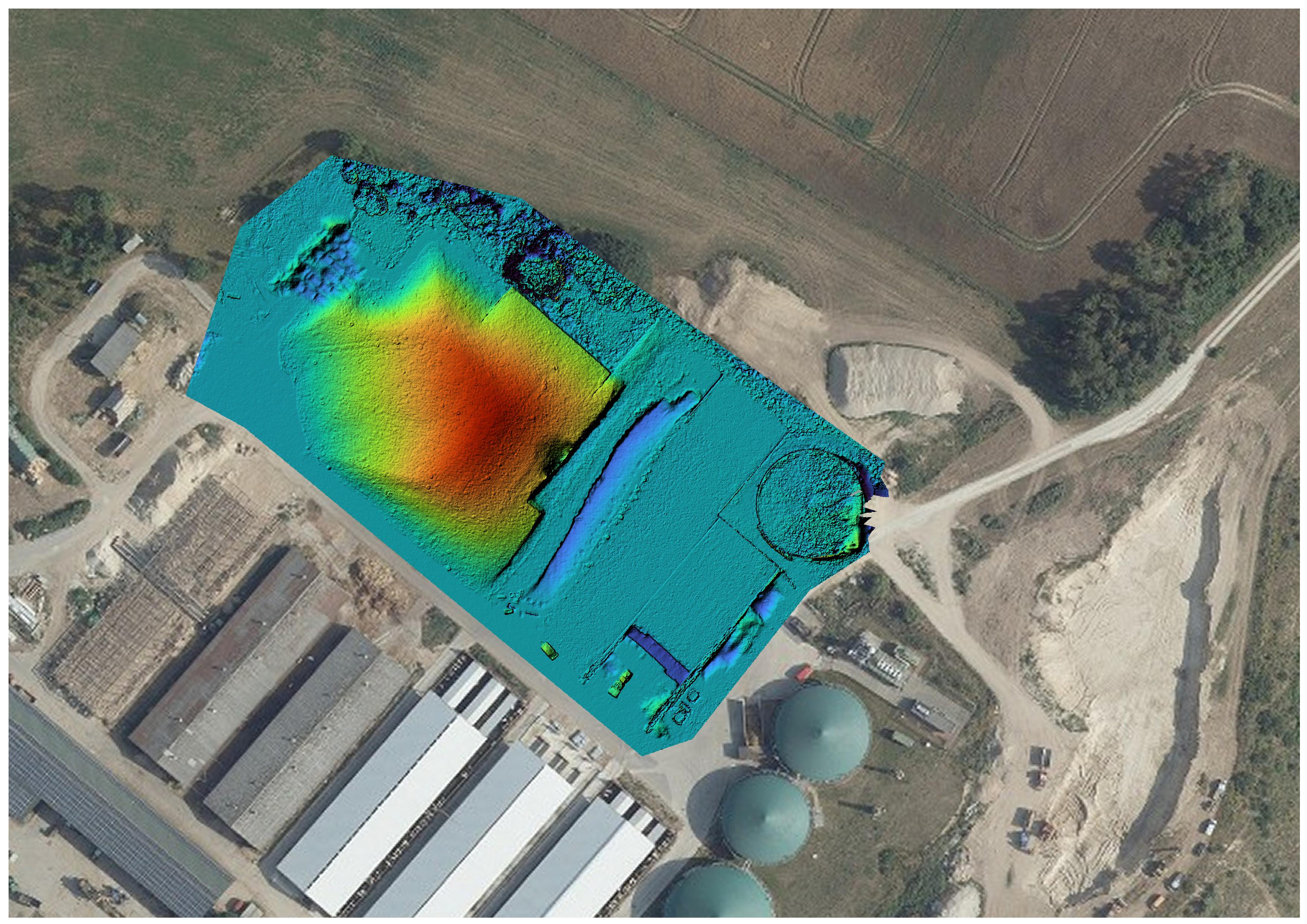 Dank der structure from motion (sfm) Technologie können so innerhalb kurzer Zeit hochgenaue Modelle und daraus genaue Volumina errechnet werden. Diese Technmologie nutzen wir z.B. um Feldfrüchte, wie Mais- und Zuckerrübenmieten zu berechnen. Ein Beispiel einer Drohnenbefliegung sehen Sie unten. Hierbei handelt es sich um eine Maismiete, welche vom Kunden eigenständig mit einer RTK-Drohne vor und nach der Ernte beflogen wurde. So können genaue Bestandsänderungen dokumentiert werden.